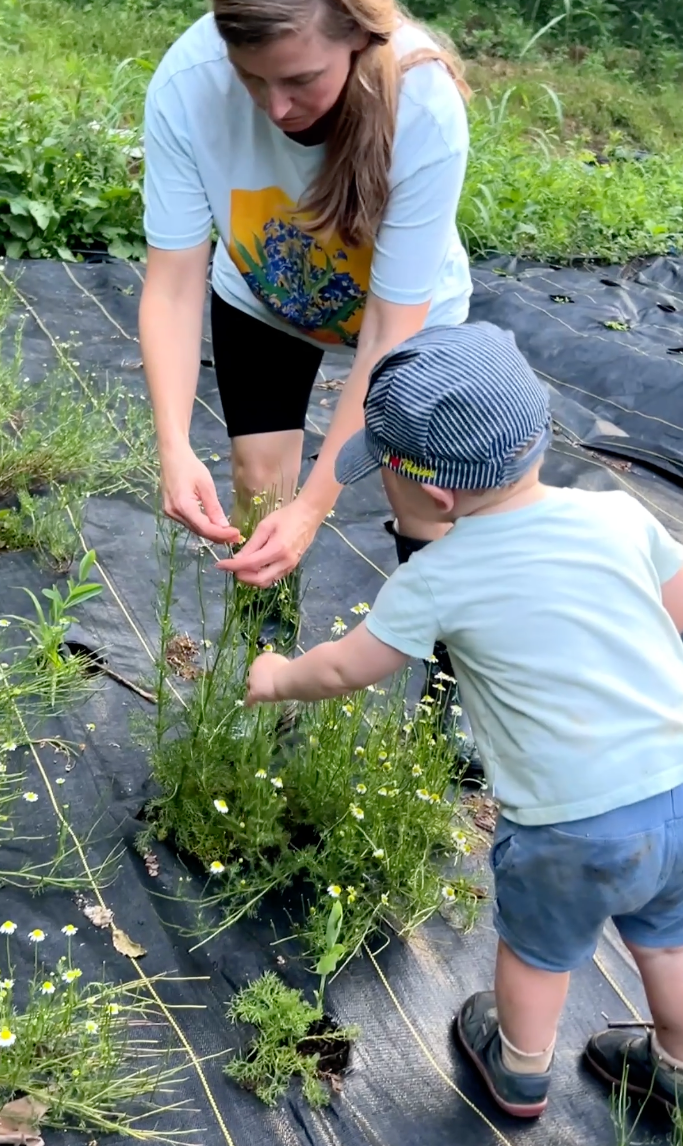 In adulthood, creating my own skincare and herbal medicine became another way to connect with nature, restore a sense of safety, and explore a new creative outlet. My growing passion for herbalism, gardening, foraging, and wildcrafting led me to start a natural skincare business in 2018, sharing my offerings at our local Farmer's Market. During pregnancy I developed another sensitivity, this time to fragrance and essential oils. When I returned to my craft in 2023, I became committed to creating the kind of farm-fresh, sensory-friendly products I couldn't readily find anywhere else. I wanted products that nurture sensitive systems and honor the planet.
