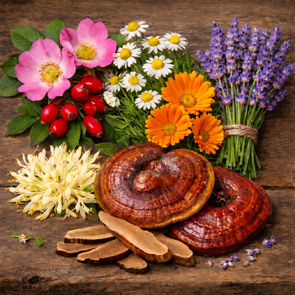 Reishi Mushroom is rich in antioxidants and naturally soothing compounds that help calm irritation, support skin repair, and protect against environmental stressors. Known for its adaptogenic properties, reishi helps the skin better cope with daily stress while promoting a balanced, resilient, and healthy-looking complexion.