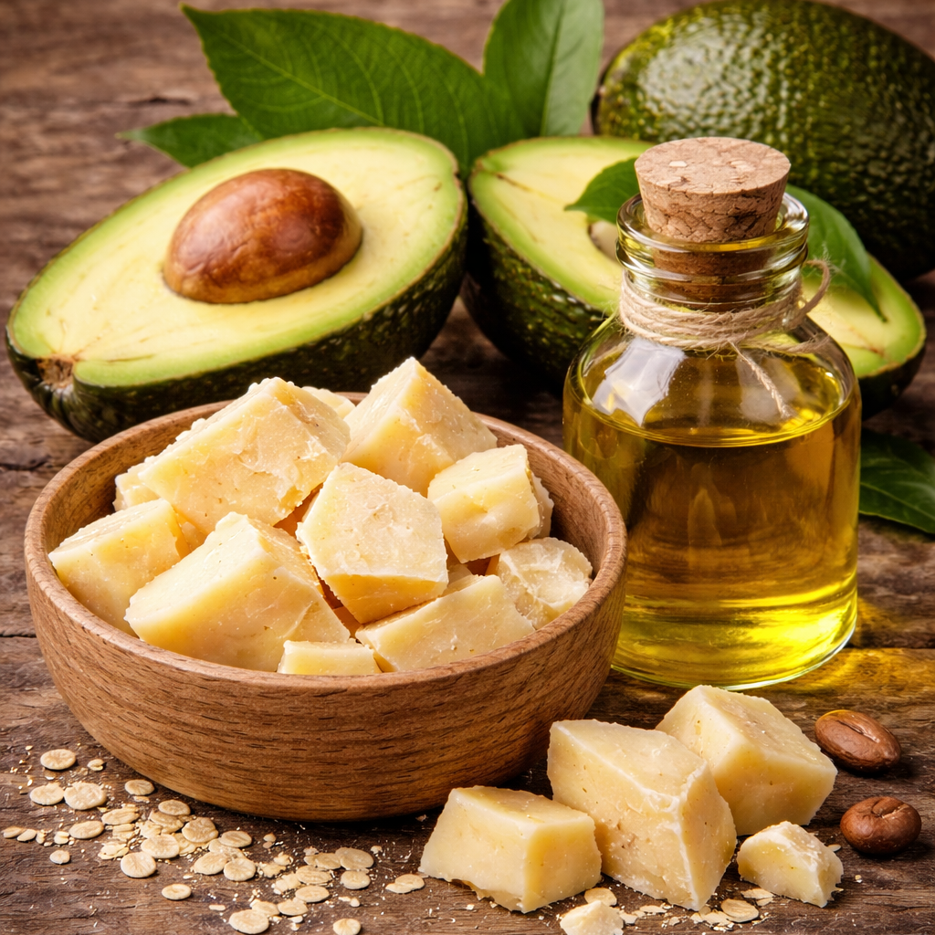 Theobroma Cacao (Cocoa) Seed Butter*, Cocos Nucifera (Coconut) Oil*, Persea Gratissima (Avocado) Oil*, Cera Alba (USA Beeswax), Tocopherol (Vitamin E)